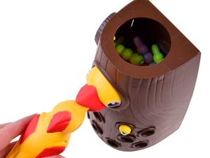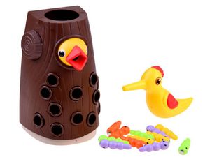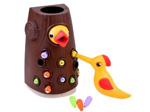 Zabawna gra zręcznościowa, w której zadaniem jest nakarmienie głodnego pisklaka robaczkami z drzewa. Mama dzięcioł na końcu dzióbka ma ukryty magnes, za pomocą którego wyciąga robaki z pnia drzewa. Następnie musi nakarmić swoje małe dziecko, umieszczając korniki w jego dzióbku. Gra uczy koncentracji oraz ćwiczy precyzję ruchów, koordynację oko-ręka. Jest również pretekstem do rozmowy o zachowaniu ptaków, ich sposobach odżywiania czy po prostu otaczającej nas naturze. Zestaw zawiera:- pień drzewa z pisklakiem,- mama- dzięcioł, - 12 robaczków.Wymiary pnia:wysokość: 18,5 cm, szerokość: ok. 10,5 cm, głębokość ok. 8,5 cmDługość robaczka ok. 4,5 cmWszystkie elementy zestawu zostały wykonane z wysokiej jakości tworzywa sztucznego, w przyjemnych dla oka kolorach. Zestaw zapakowany w kolorowe, estetyczne pudełko, idealne na prezent.