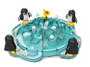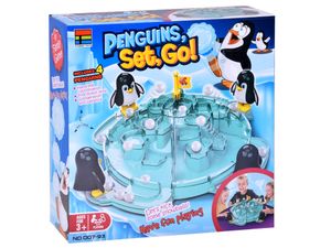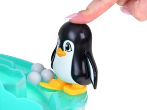 Rodzinna gra zręcznościowa "Pingwiny ruszają!" - kto szybciej zdobędzie lodową górę?Przenieś się na lodową górę i weź udział w szalonej bitwie na śnieżki razem z uroczymi pingwinkami! Gra "Pingwiny ruszają!" to dynamiczna gra dla całej rodziny, w której liczy się refleks, celność i odrobina szczęścia.O co chodzi w grze?Twoim zadaniem jest pomóc pingwinkowi wykopać jak najwięcej śnieżnych kulek na lodową górę - szybciej niż Twoi przeciwnicy. Naciśnij na głowę pingwina, a on kopnie śnieżkę prosto na lodowy szczyt!Zawartość zestawu:góra lodowa z flagą4 x pingwin24 x "śnieżna" kulka2 x naklejka na flagęWymiary:plansza (góra lodowa): 34 cm x 13 cmpingwin: 8 cm x 8 cmśnieżka: śr. ok. 1,5 cmKorzyści z gry:rozwija zręczność i koordynację,gwarantuje dynamiczną rozgrywkę, pełną śmiechów,jest doskonałą grą dla całej rodziny.Instrukcja do gryCel gry: stuknij pingwinka w głowę, aby kopał śnieżki na górę lodową. Twoim zadaniem jest zdobyć wszystkie wymagane miejsca na swojej części góry szybciej niż inne gracze.Ilość graczy: 2-4 osóbWiek: 3+Przygotowanie:Złóż górę lodową - połącz 4 elementy w całość i zamocuj flagę na szczycie.Umieść pingwiny na wyznaczonych miejscach, tak by były skierowane w stronę góry.Wybierz razem z graczami po jednym pingwinie.Rozłóż po 6 śnieżek na gracza w zbiorniczku obok każdego pingwina.Zasady gry:Wszyscy gracze przygotowują swoje pingwiny.Wspólnie wołacie "Pingwiny ruszają!" i zaczynacie kopać śnieżki, stukając pingwiny po głowie.Jeśli śnieżka spadnie na podłogę - możesz ją podnieść i zagrać ponownie.Jeśli wpadnie do strefy innego gracza - on ją zatrzymuje.Śnieżki, które wylądują na Twoich półkach lodowych, zostają - to Twój postęp w grze!Wygrana:Zwycięża gracz, który jako pierwszy zapełni wszystkie cztery półki na swojej części lodowca.Alternatywnie - kto pierwszy trafi śnieżką na sam szczyt z flagą, również wygrywa.Dla młodszych graczy: można uprościć zasady - wygrywa już ten, kto zapełni jedną lub dwie półki.To świetna propozycja dla dzieci i dorosłych - idealna na rodzinne wieczory i wspólne spędzanie czasu.