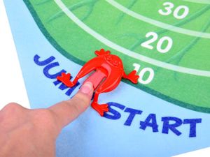 Rewelacyjna gra zręcznościowa dla całej rodziny. Gra wymaga zręczności, jest łatwa do nauczenia i zabawna.Proste zasady, świetnie wykonana gra, oraz możliwość zabawy niezależnie od wieku sprawiają iż w grę potrafi zaangażować się cała rodzina i to na długie godziny :)Całą grę rozpoczynamy od rozłożenia planszy z punktacją i położenia na środku miseczki. Wariant pierwszy:Grę rozpoczyna najmłodszy z graczy , umieszczając swoją żabkę na starcie i naciskając ją w taki sposób aby podskoczyła ona w stronę środka planszy. Kolejni gracze wykonują swoje ruchy zgodnie z kierunkiem wskazówek zegara. Wygrywa ten, kto doskoczy najbliżej środka i zbierze najwięcej punktów.Wariant drugi:Każdy z graczy otrzymuje taką samą ilość monet. Grę rozpoczyna najmłodszy z graczy i kontynuowana jest zgodnie z kierunkiem wskazówek zegara. Gracze po kolei skaczą swoimi żabkami zdobywając punkty. Gracz który uzyska najniższy wynik oddaje monety temu, kto zdobył najwięcej punktów. np. zawodnik A zdobył 50 punktów, B - 20 pkt , C - 30 pkt. W takiej sytuacji zawodnik B oddaje różnicę w punktach graczowi A , czyli 30 pkt, zawodnik B oddaje 20 pkt.. Wygrywa ten , kto na koniec rozgrywki zbierze najwięcej monet.Zestaw zawiera:20 żabek1 plansza do gry 1 miseczka60 monetWymiary planszy :52 cm x 52 cm